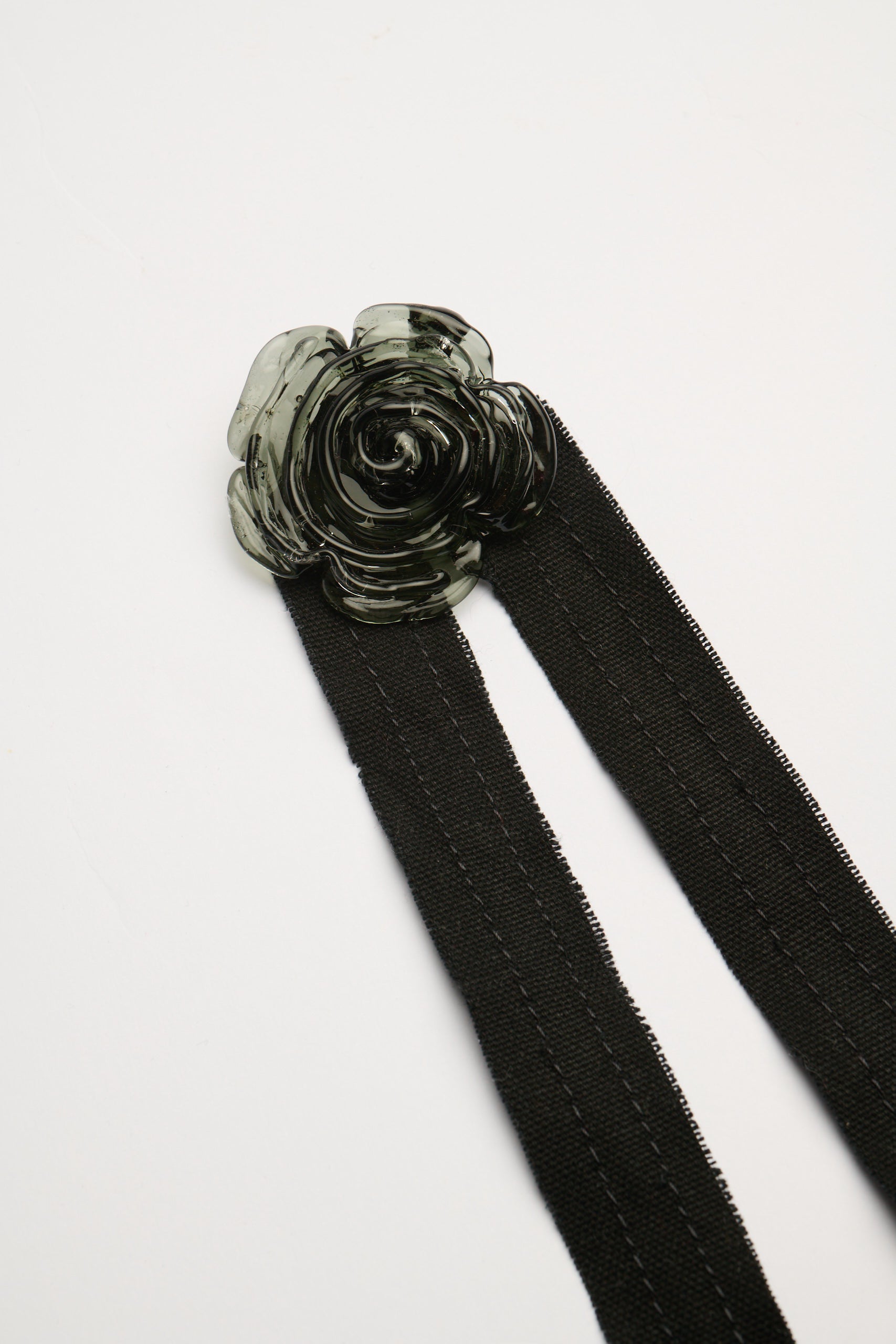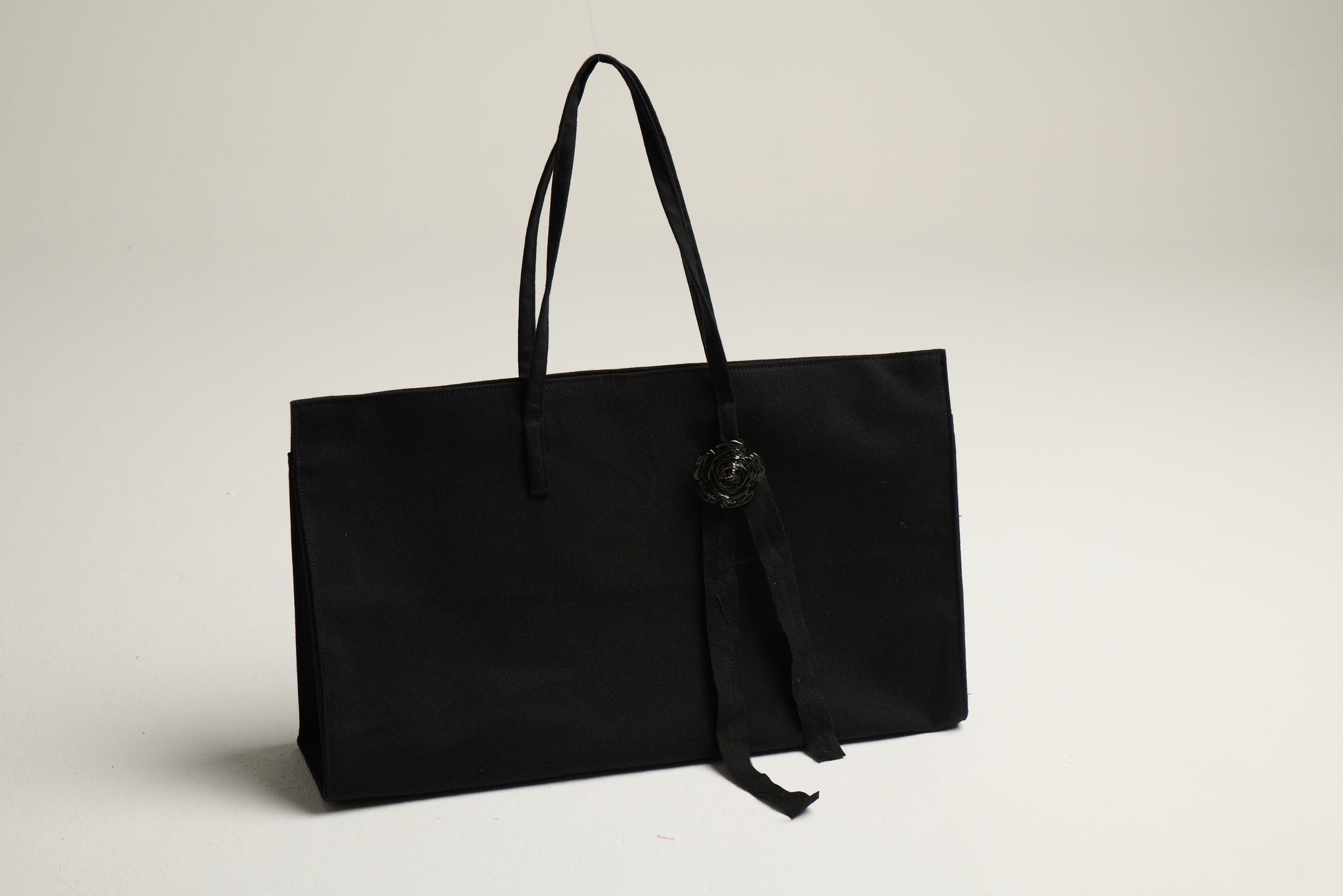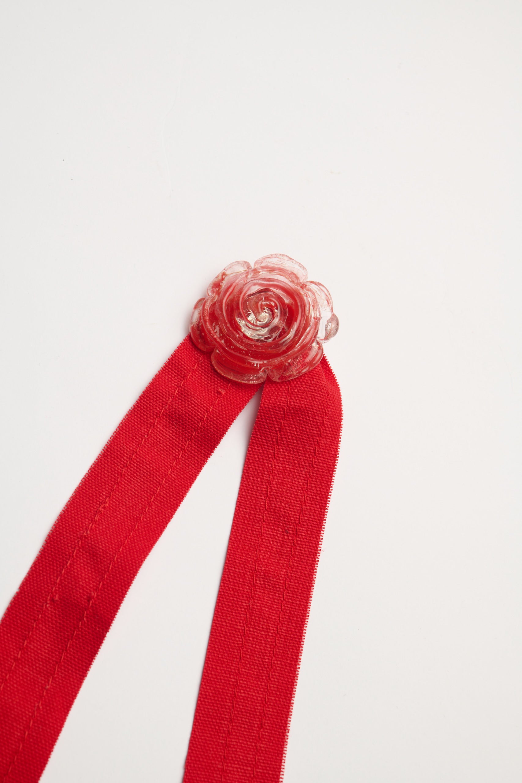 A sculptural recycled-cotton bag adorned with a borosilicate glass rose charm — to wear all day, and beyond.