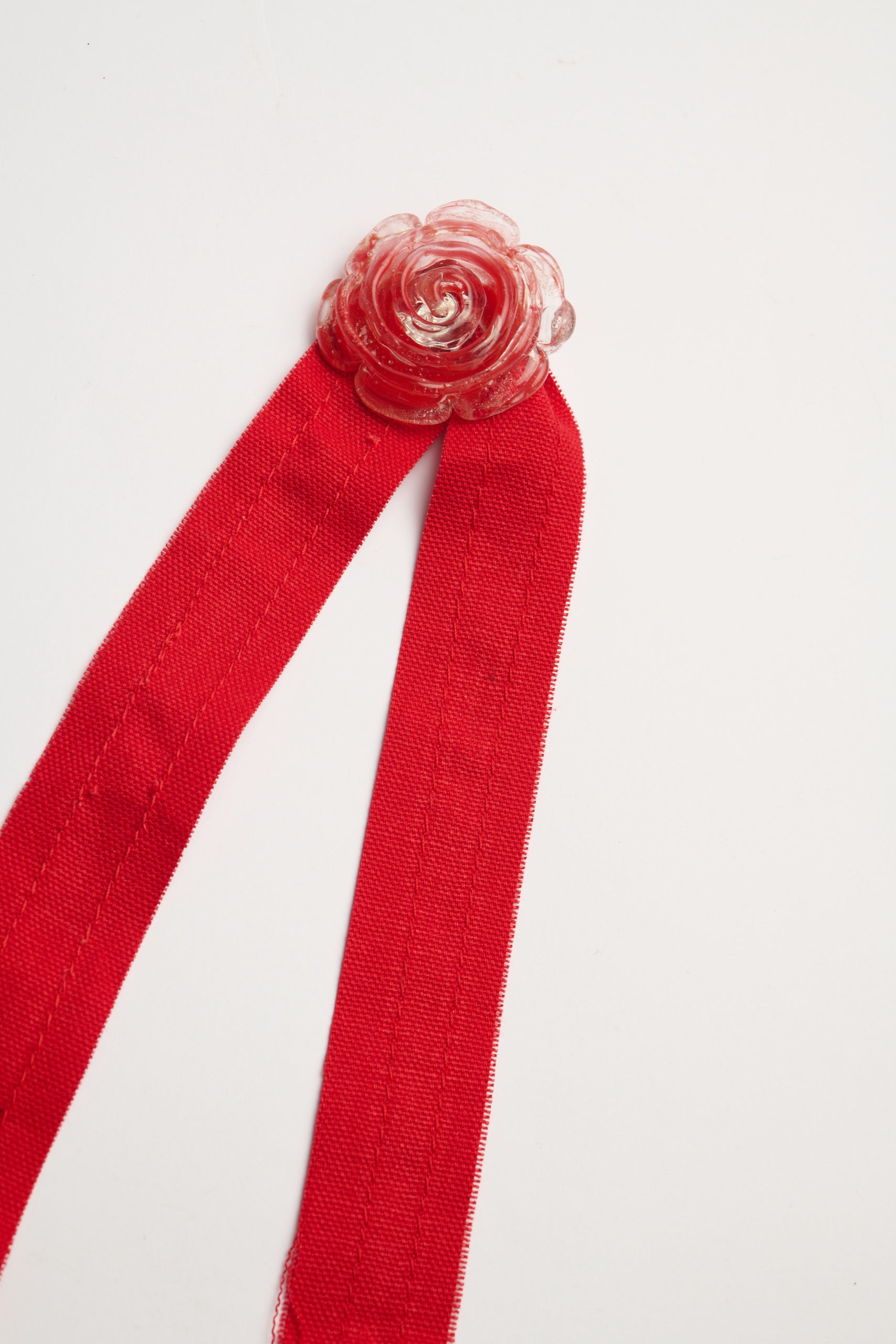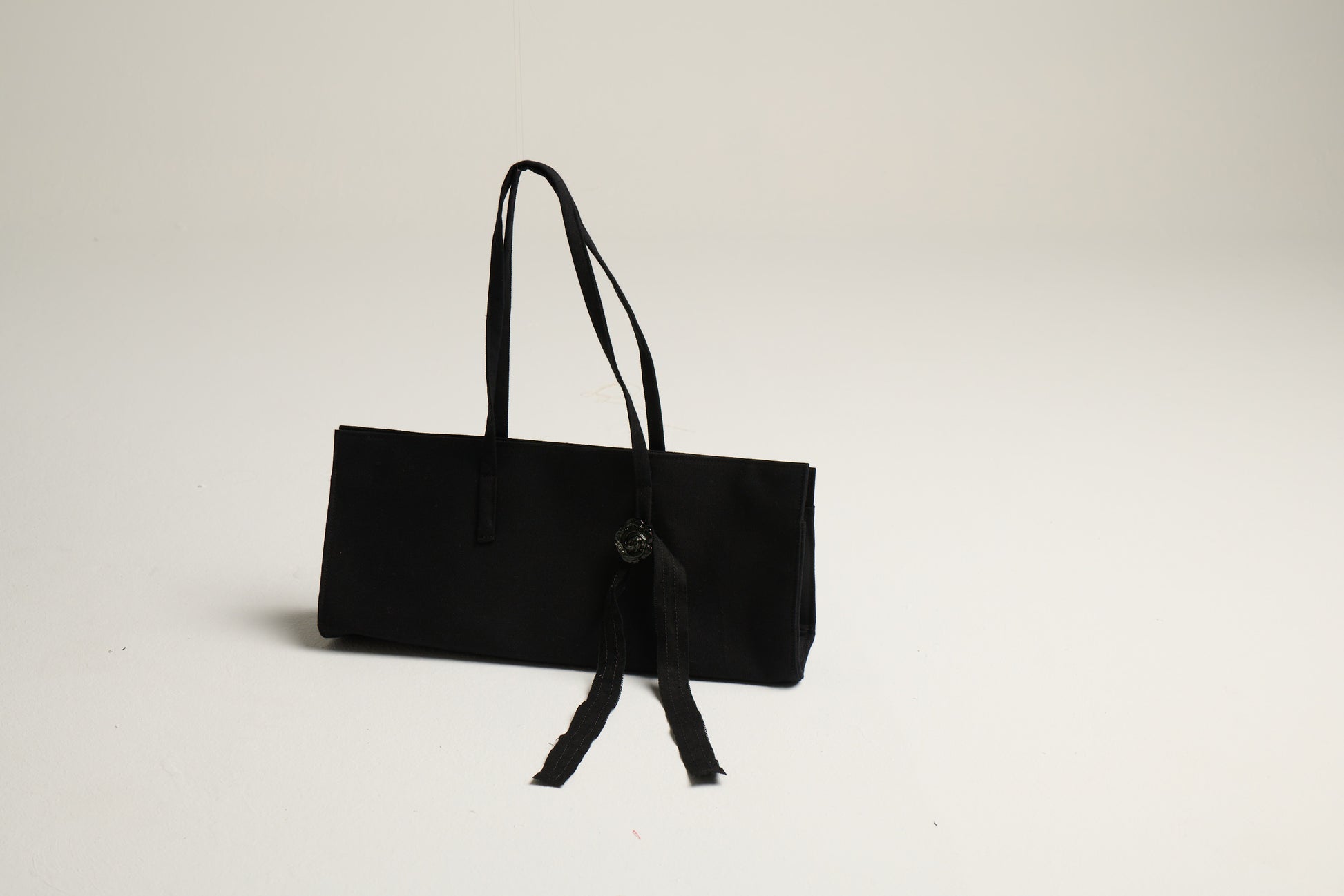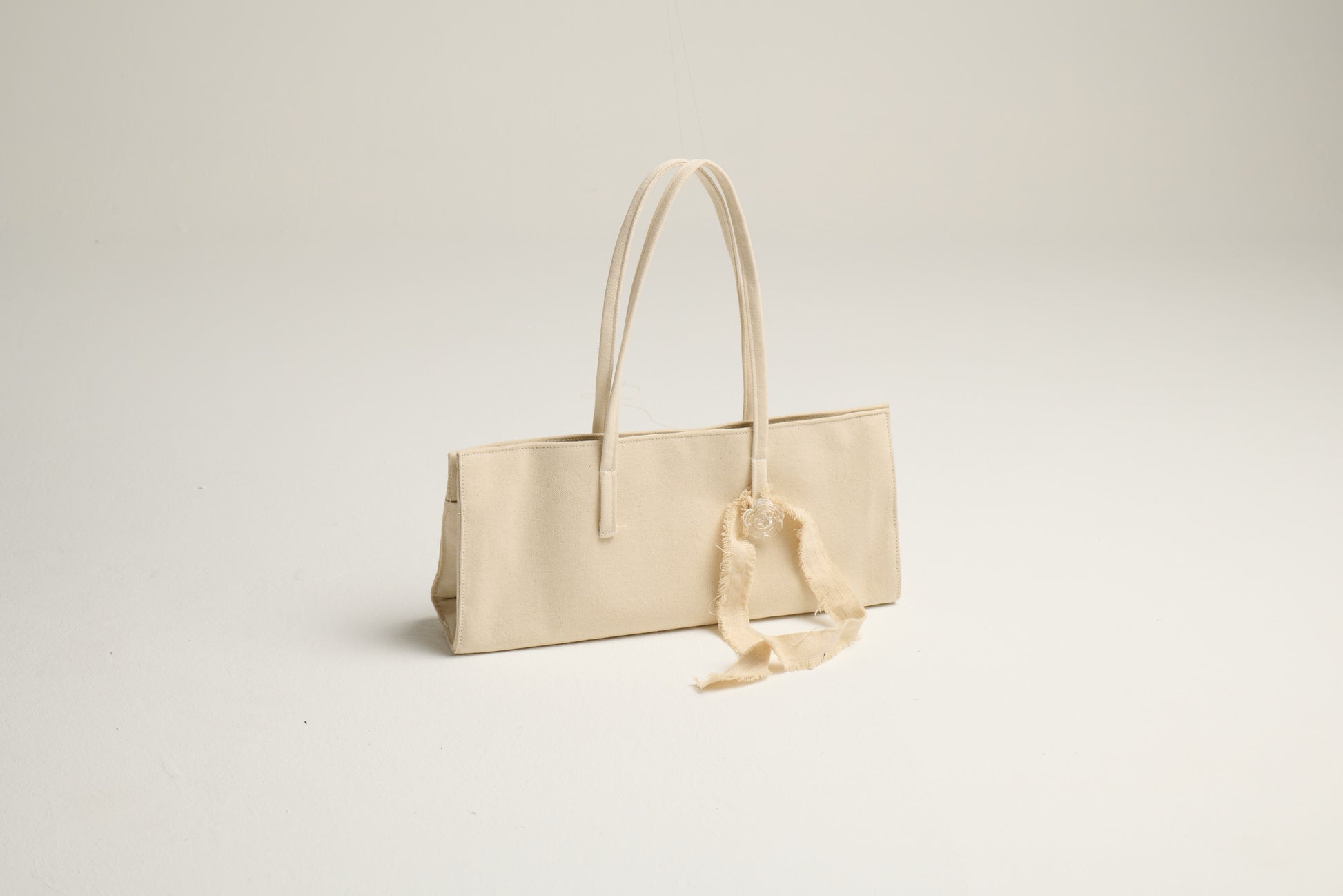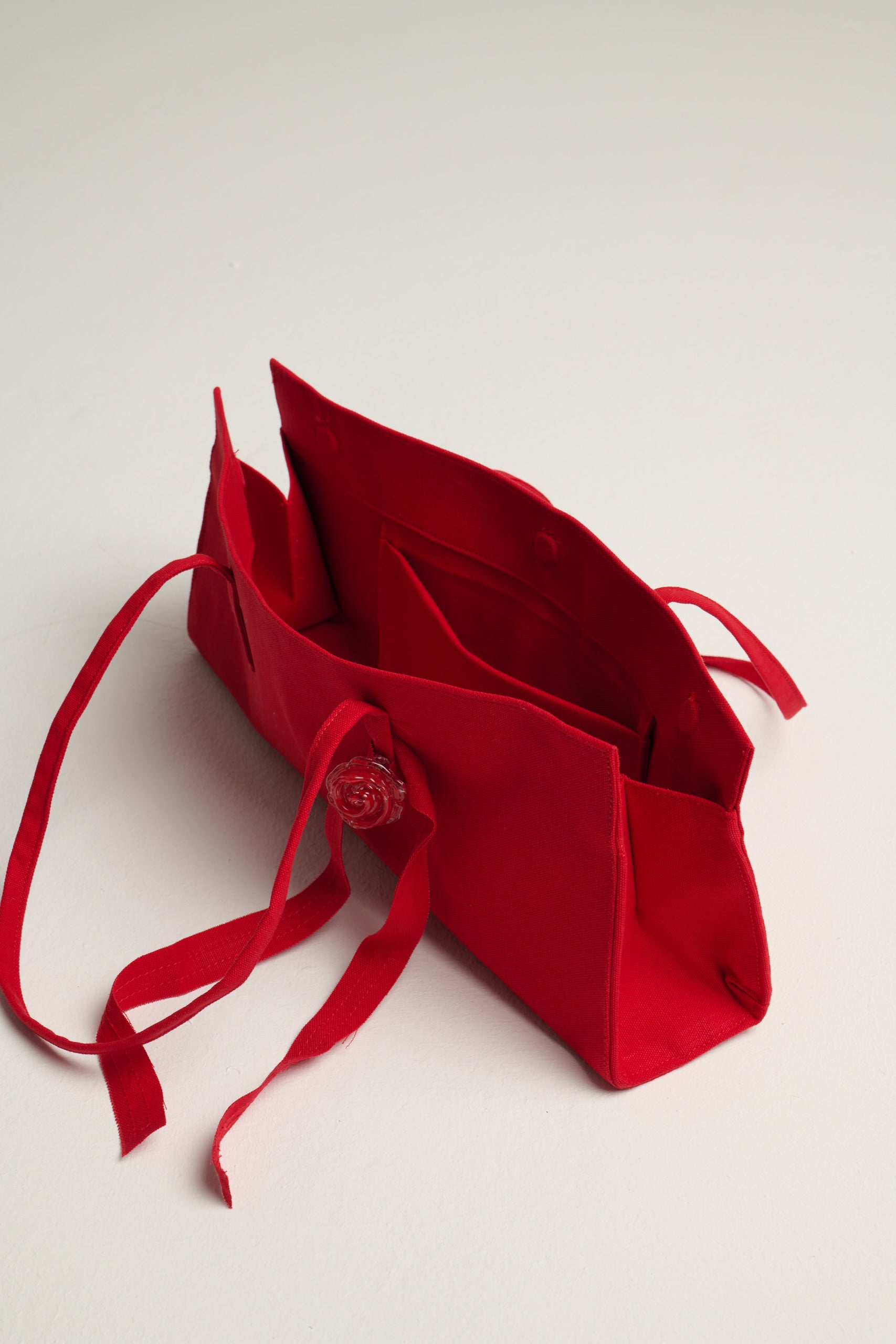 A sculptural recycled-cotton bag adorned with a borosilicate glass rose charm — to wear all day, and beyond.