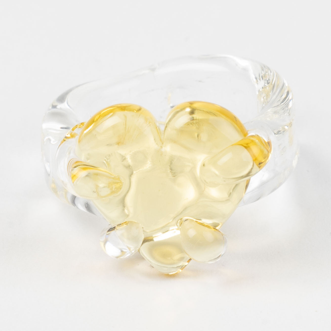 Now reinterpreted in sterling silver and gold plated brass the Flor Ring preserves its organic silhouette and sculptural gesture, translating the lightness of glass into a new material. It is also available in borosilicate glass maintaining its original luminous and delicate beauty.
