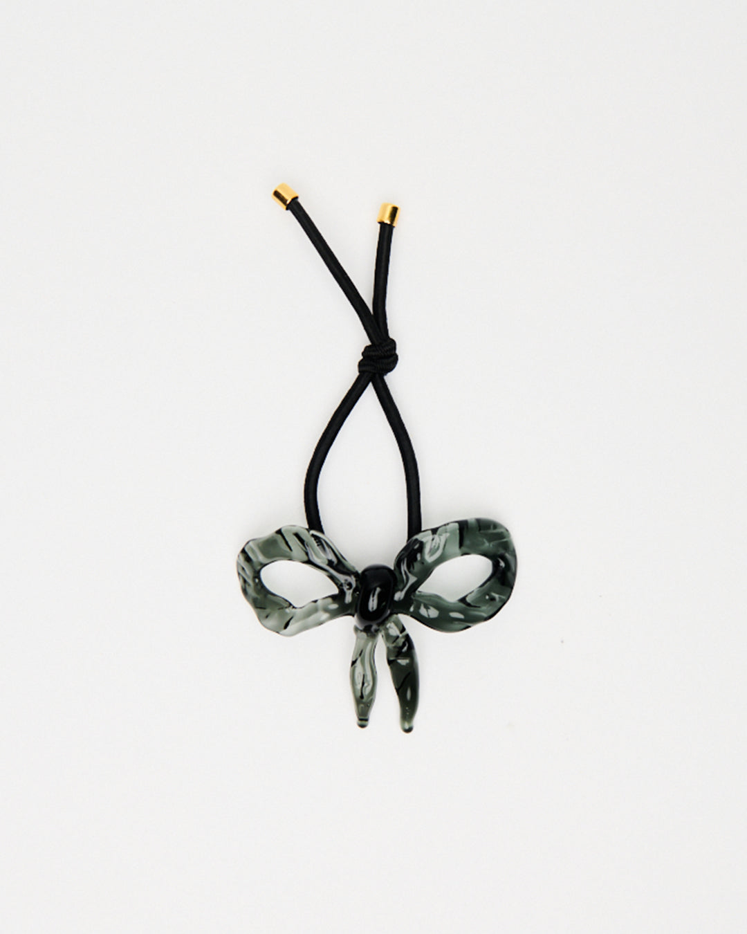Handmade borosilcate glass bow, elastic cord hair tie.