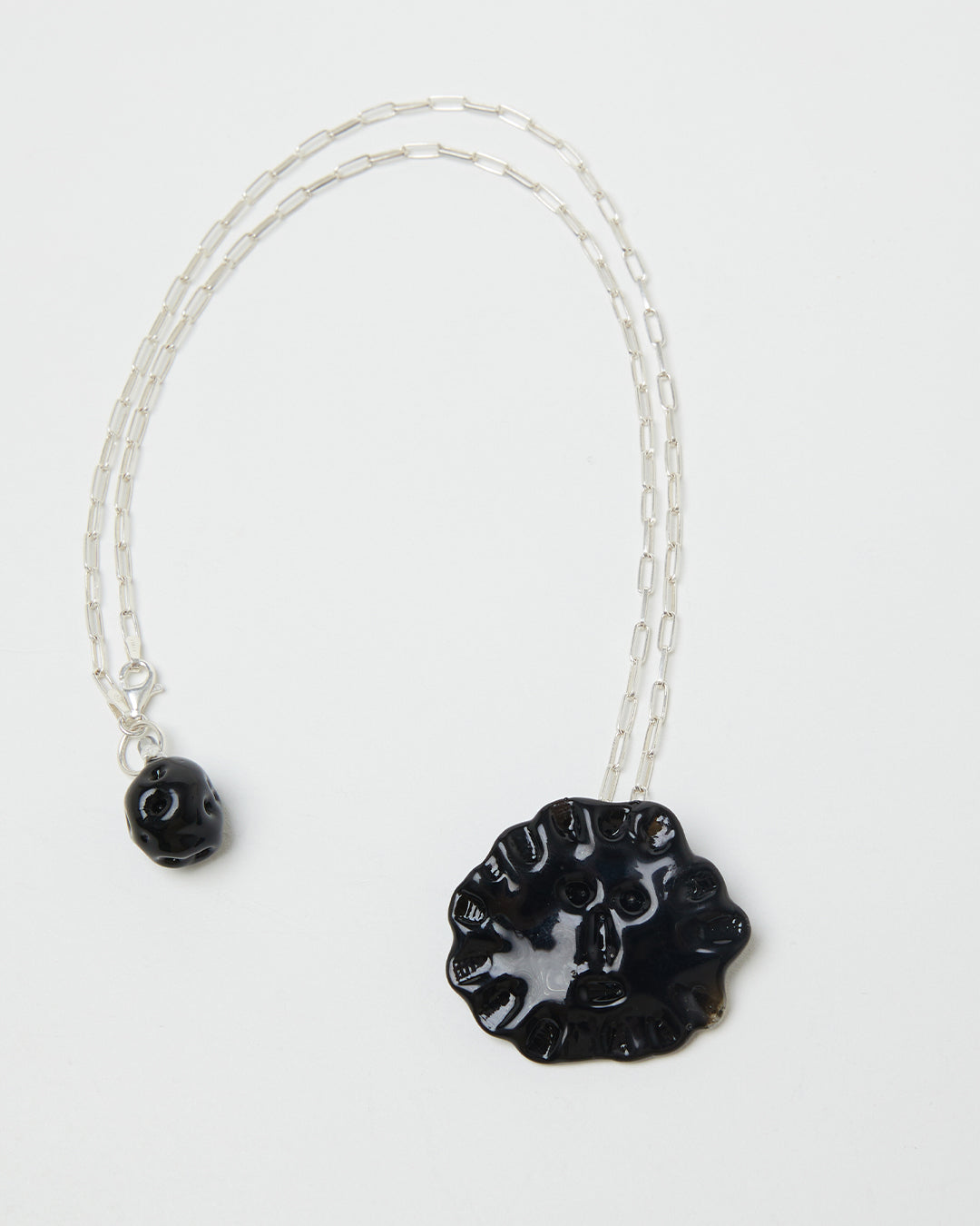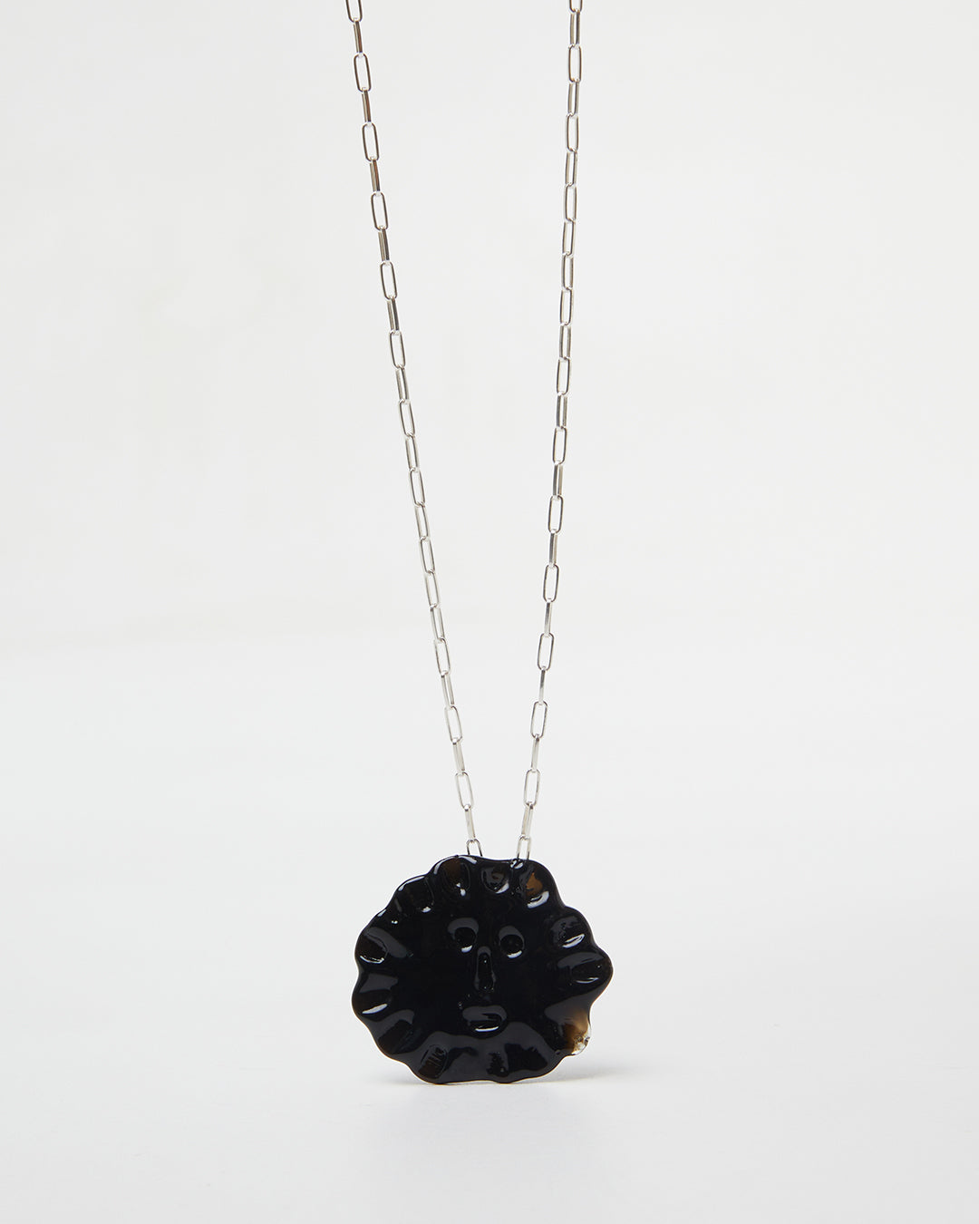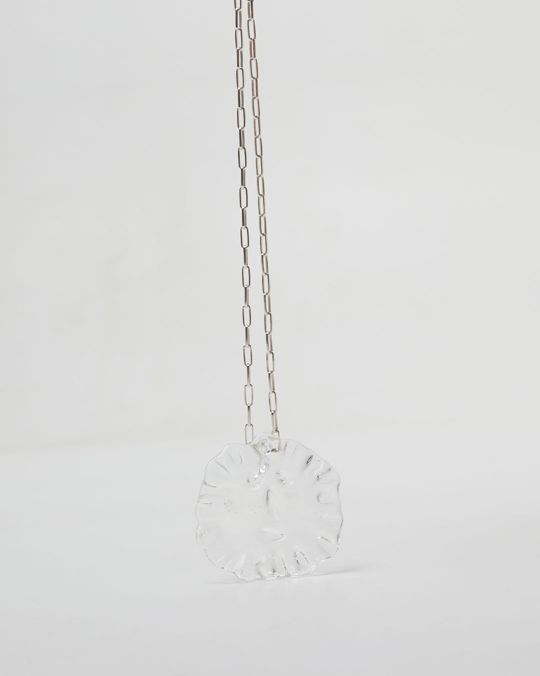 Each piece is individually handcrafted in Barcelona using highly resistant borosilicate glass and sterling silver. The length of the chain is 50cm.