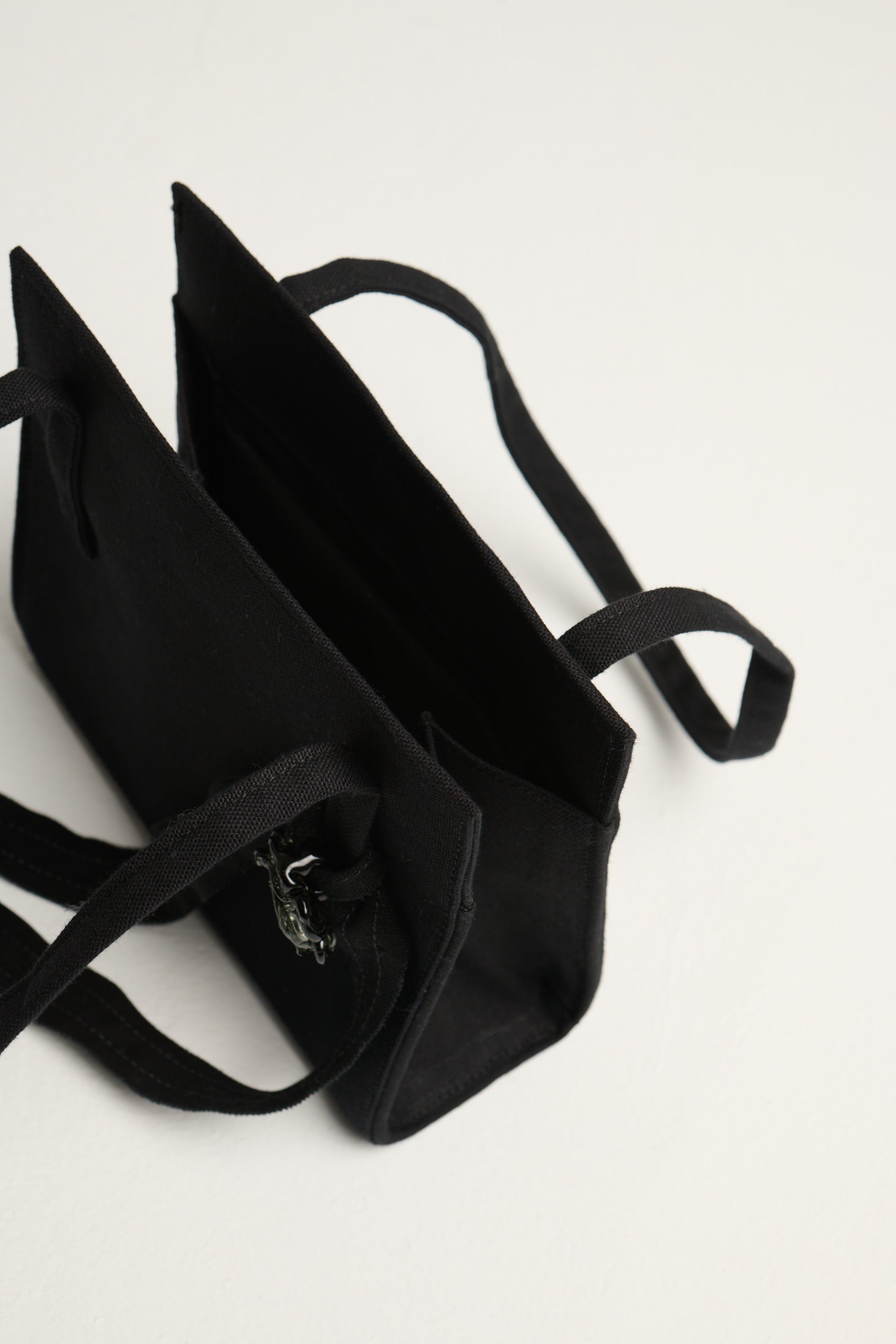 A sculptural recycled-cotton bag adorned with a borosilicate glass rose charm — to wear all day, and beyond.