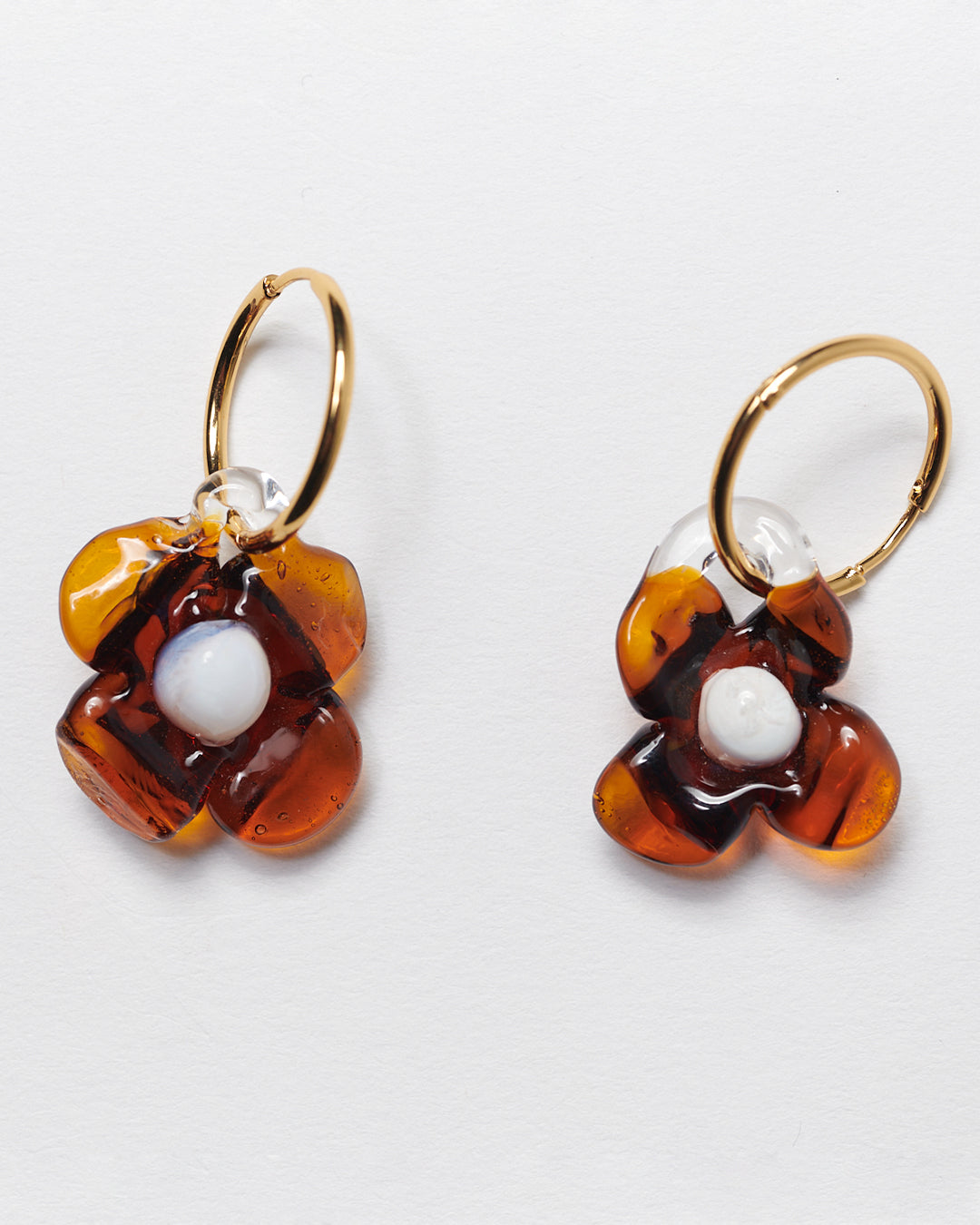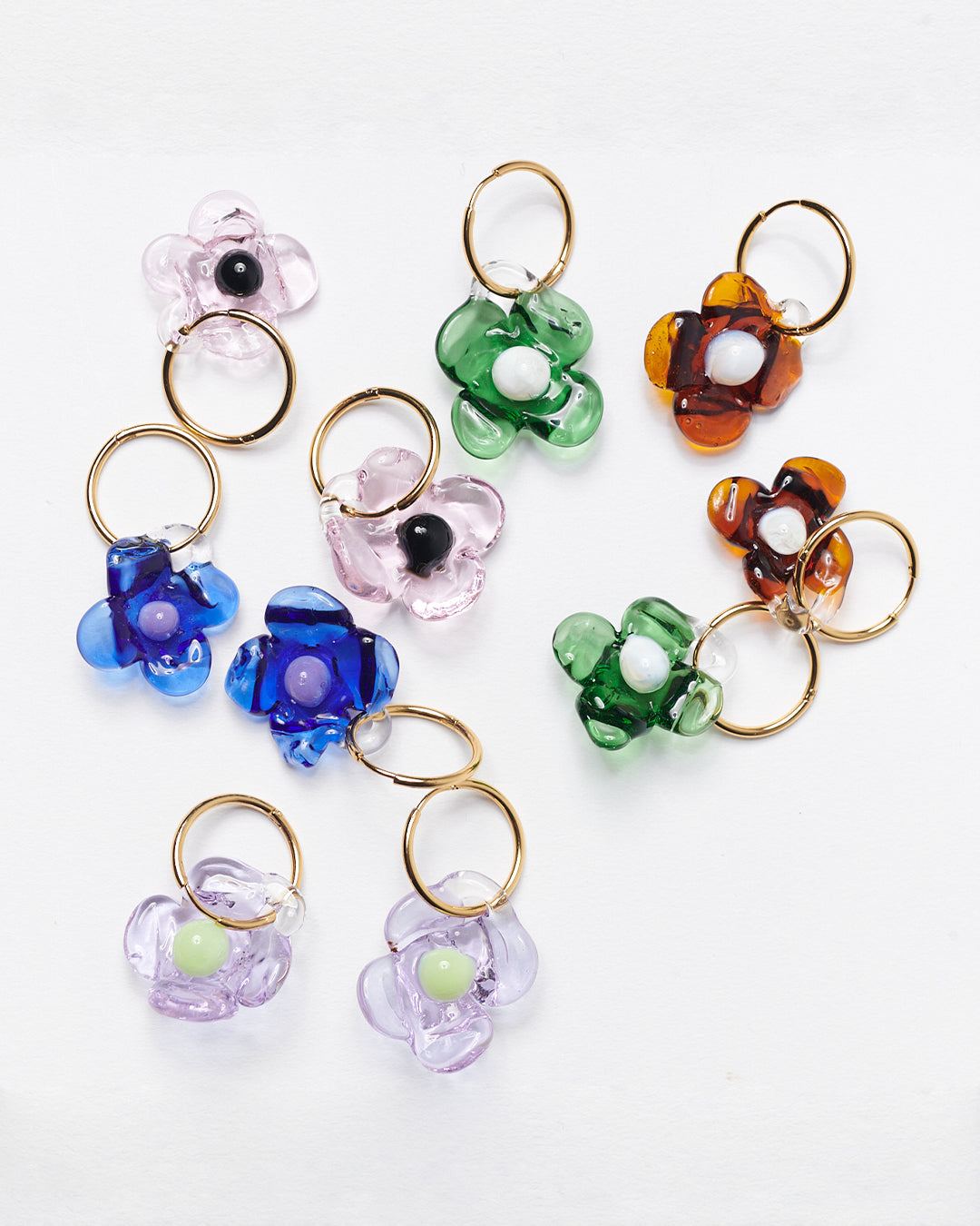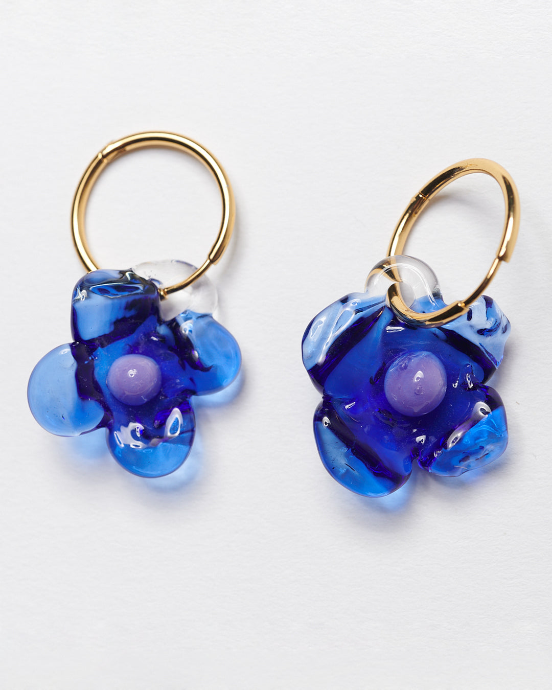 Handcrafted borosilicate glass earrings and gold plated brass (nickel free) hoops.