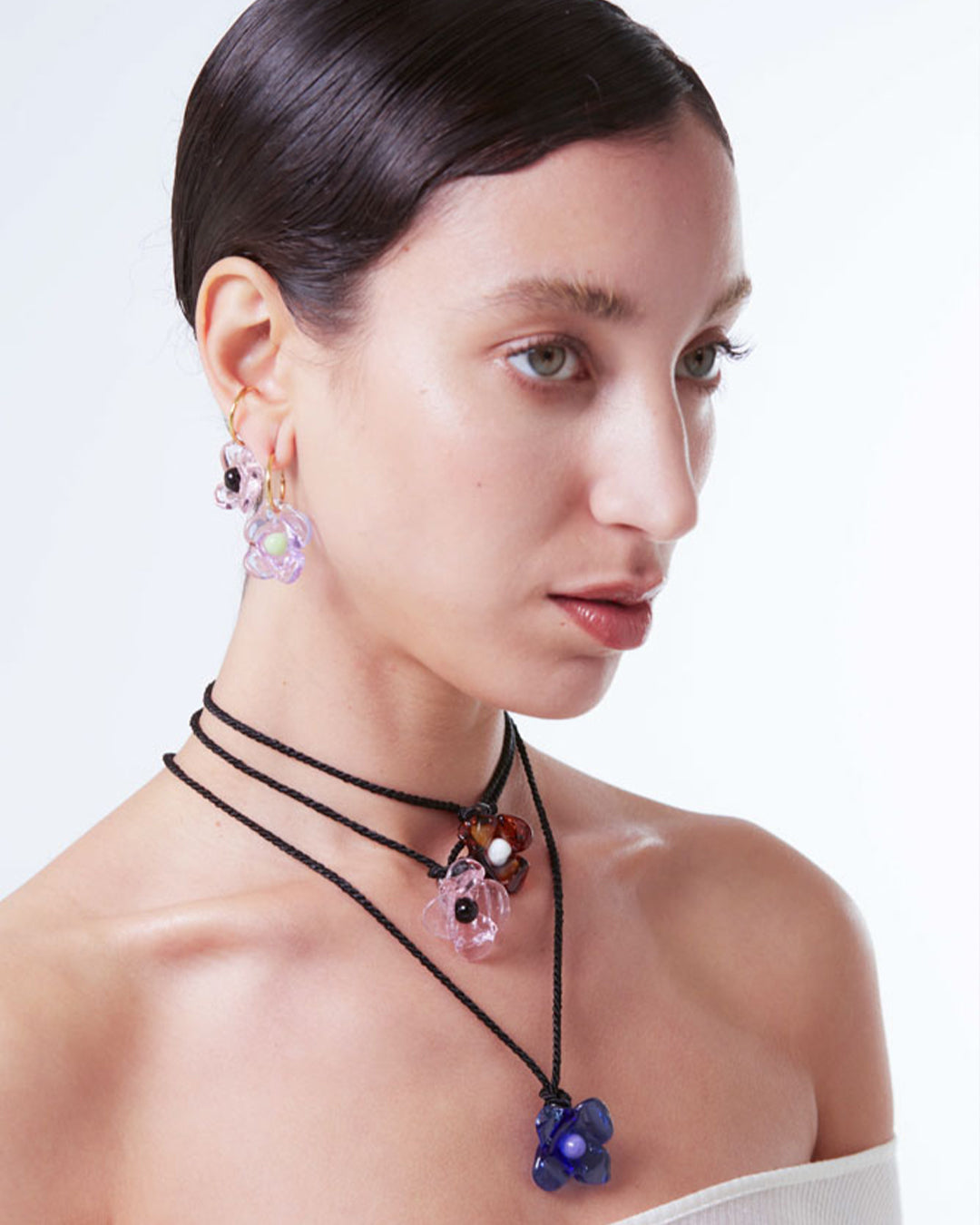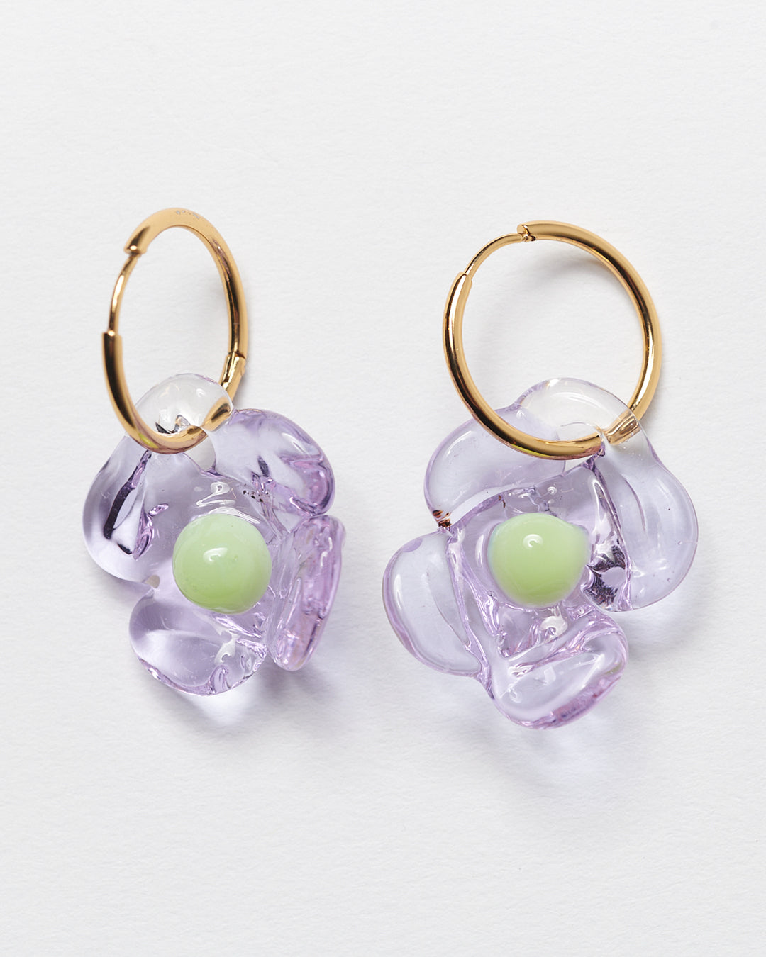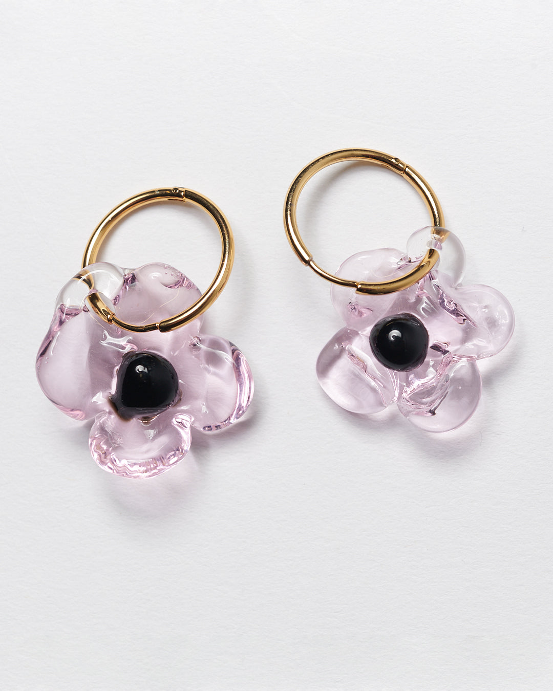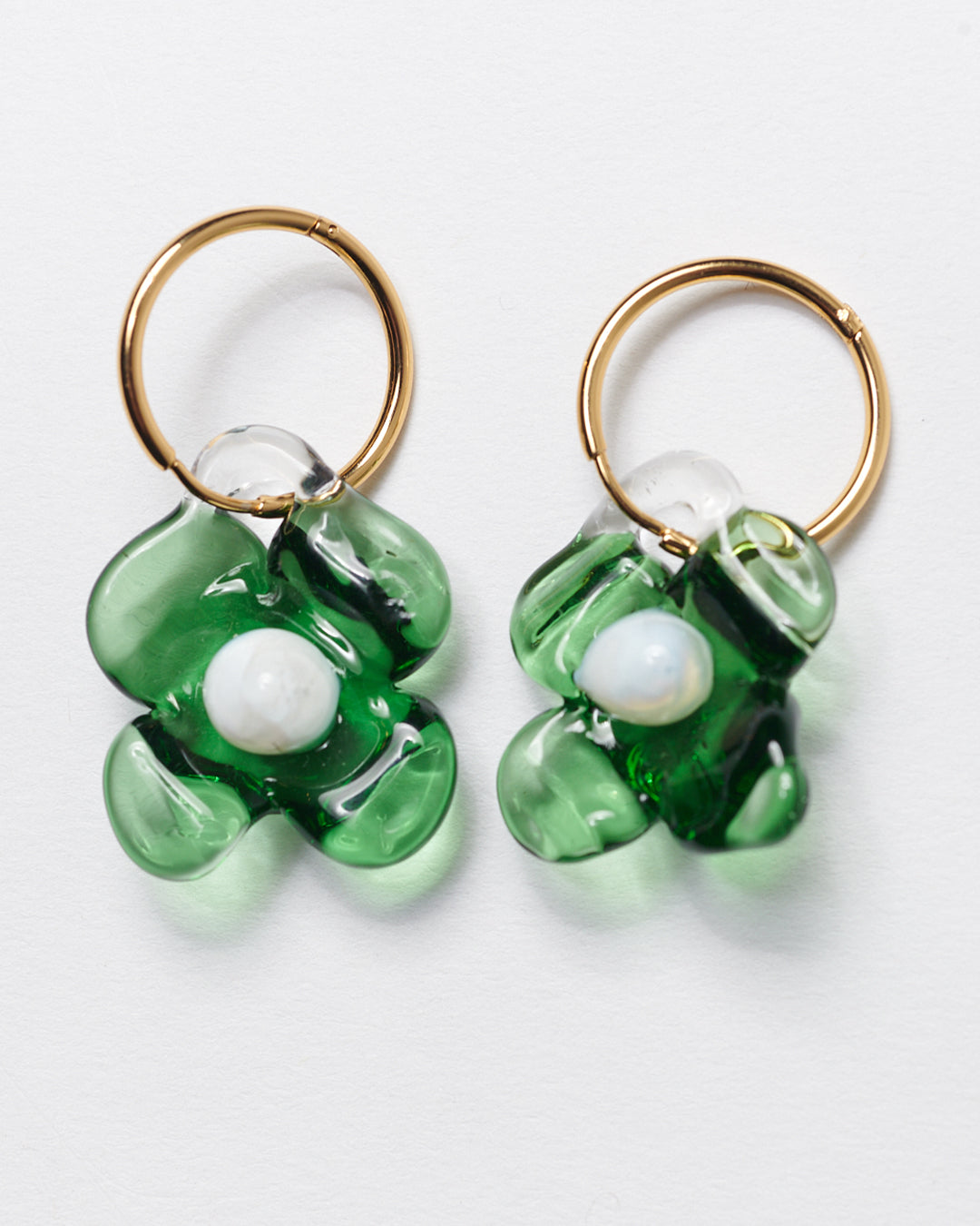 Handcrafted borosilicate glass earrings and gold plated brass (nickel free) hoops.