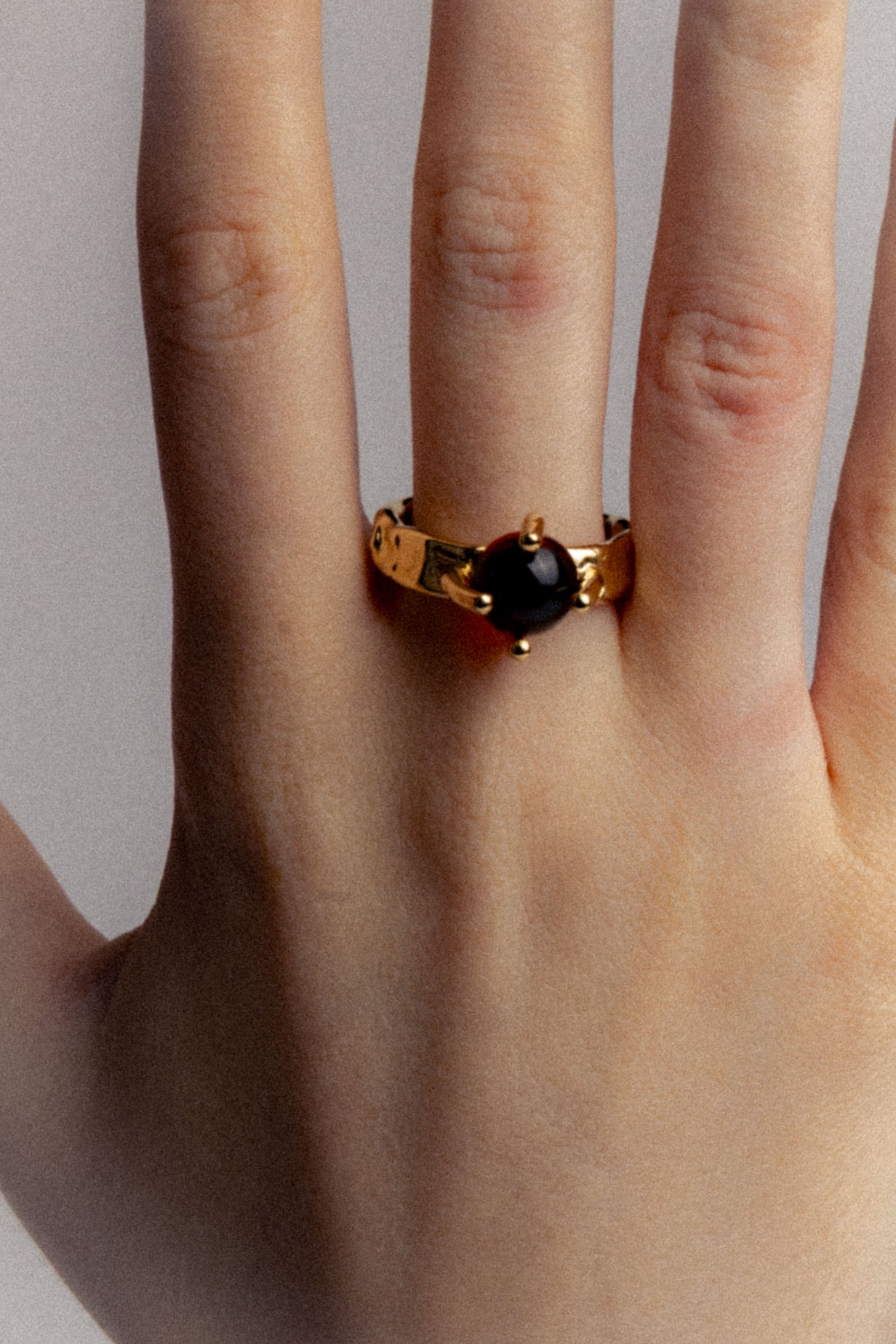 The Solitario Ring was first created in borosilicate glass, capturing the lightness and transparency of water in a sculptural, organic form. It was later reinterpreted in sterling silver and gold-plated brass, preserving its fluid silhouette and texture while translating its gesture into a new material language.