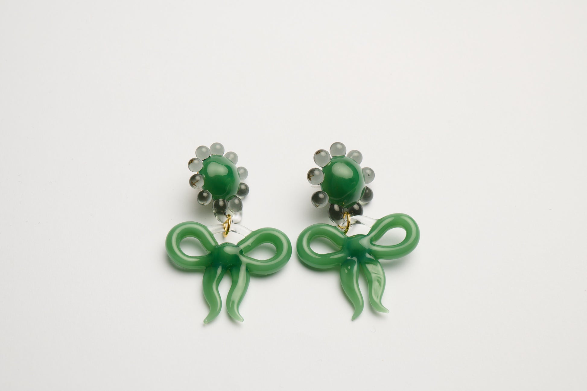 Handcrafted borosilicate glass earrings and gold plated brass backs.