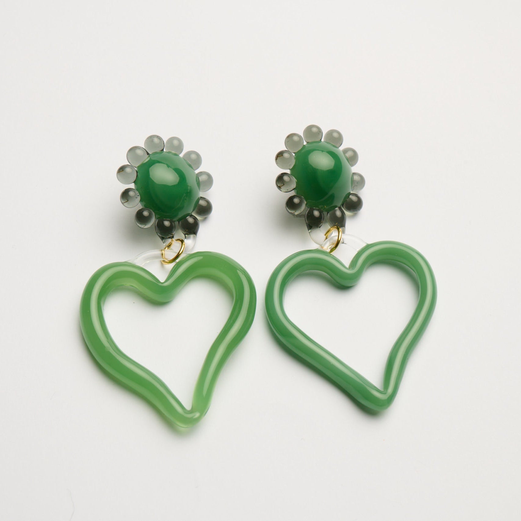 Handcrafted borosilicate glass earrings and gold plated brass backs.