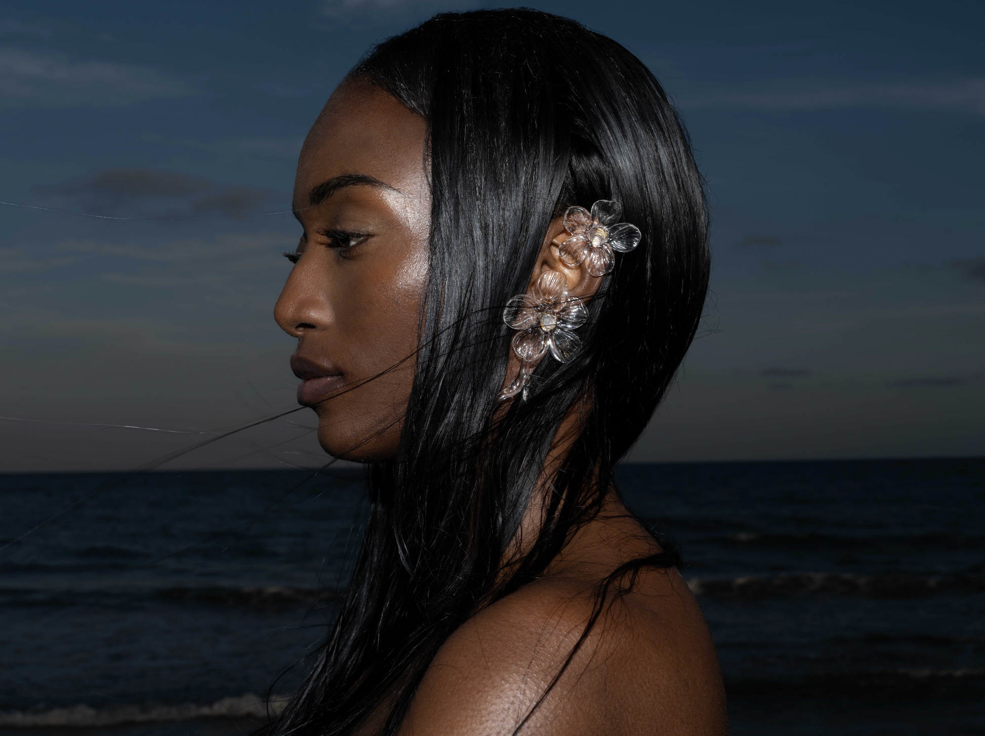 Handmade borosilicate glass and gold plated brass (nickel free) hoops.